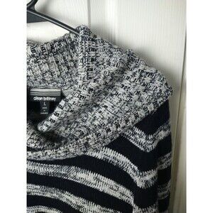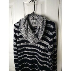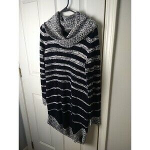 Allison Britney woman L pullover cowl/funnel neck black white nautical striped sweater dress in excellent condition no flaws