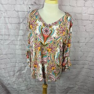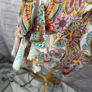 allison daley Colorful Paisley peasant Top boho western business casual sz L