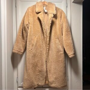 alo NWOT Oversized Sherpa Long Trench Coat Teddy Jacket Camel Small Fall Comfy