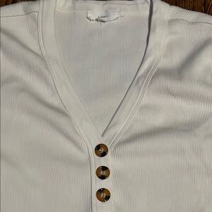 a loves a White Long Sleeve Fitted Henley with Buttoned Detail size L