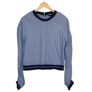 alter Baker Ruched Sleeve Blue Pullover Top | Size Large