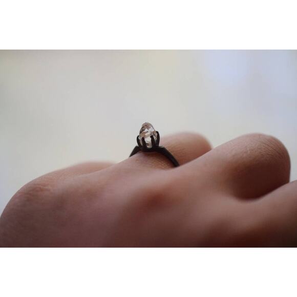 A completely raw and uncut, fresh from the earth California; Lake County Diamond set in solid sterling silver which has been oxidized to give an earthy look.