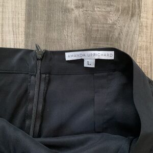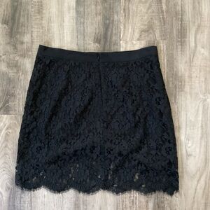 The product is a black lace skirt by Amanda Uprichard in size large. It features a zip closure, mini length, and is made of polyester material. The skirt is lightweight and lined, making it suitable for casual occasions. With a stylish lace accent, this skirt is a fashionable choice for women's clothing, specifically in the skirt category. Made in China, this regular-sized skirt is a versatile addition to any wardrobe.