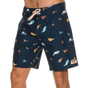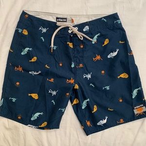 Ambsn Board Shorts Size: 33 Color: Blue Fitted waste with tie strings