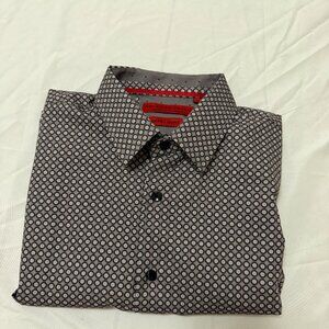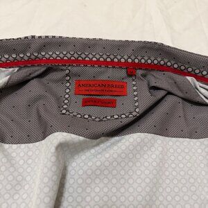 American Breed Smart Shirt in men’s size Medium. Long sleeve dress shirt with a gray geometric circle pattern and button front. Shirt has been worn once and is in excellent condition with no flaws or issues. Lightweight, wrinkle-resistant material.