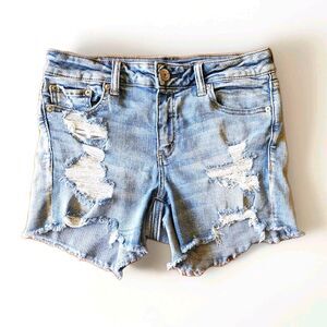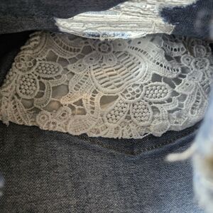 american eagle Size 10 Midi Distressed Denim Jeans shorts Lace Pockets