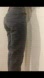 Appears black but it is grey as shown in pictures 4/5 and in the video. I am 5’6 and these jeans end right at my ankles. The size says 000 but i am a 24 waist. Picture 6 shows a light mark. It is not a stain,, that’s how they were bought.