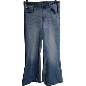 american eagle jeans 12 SHORT super hi rise crop flare Blue Light Wash Stretch