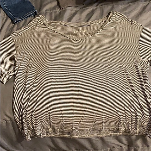 super comfy and cute ae striped top! hardly worn can be tied or worn more loosely. wrinkled from storage!!