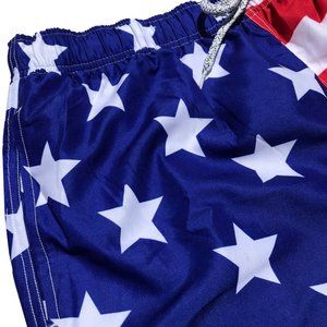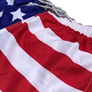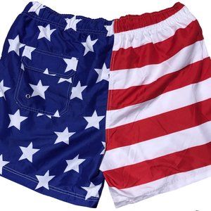 american flag trunks made with 100% polyester. Machine wash with cold water. Brand new with tags
