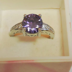 amethyst purple ring sz9.5 CZ & Rhinestone ... xr26