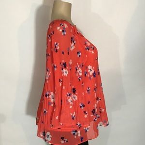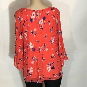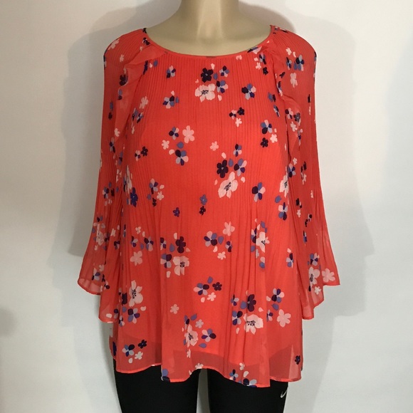 Orange floral blouse, size: pl, materials: shell 100% polyester, lining 100% polyester, condition: preowned.