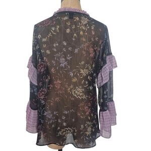 A New Approach Black Sheer Floral Blouse Ruffle Sleeves Size Small