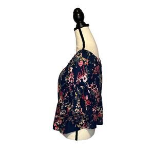 a.n.a. A New Approach Blouse Womens PM Navy Floral Bell Sleeve Off The Shoulder