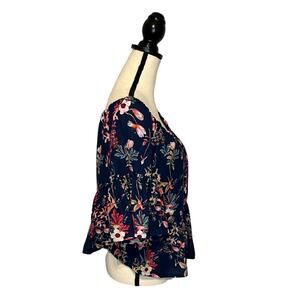 a.n.a. A New Approach Blouse Womens Sz PM Navy Floral Bell Sleeve Off The Shoulder