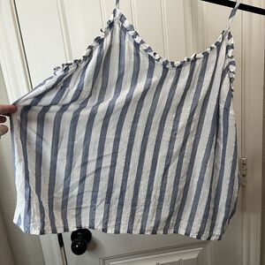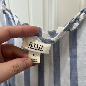 a.n.a. A New Approach Blue White Striped Ruffle Tank Top Beachy Coastal Women XL
