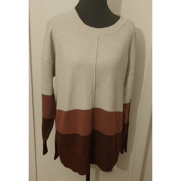 a.n.a A New Approach Color Block Pullover Sweater Women’s M Beige Brown & Rust