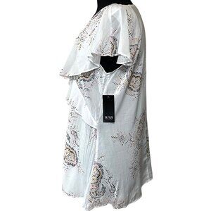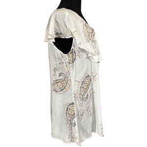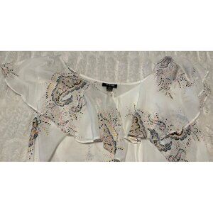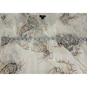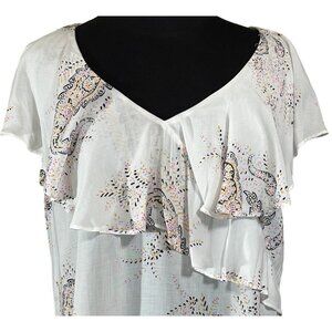 a.n.a A New Approach Ruffled White Paisley Blouse 100% Rayon Women's Size Medium