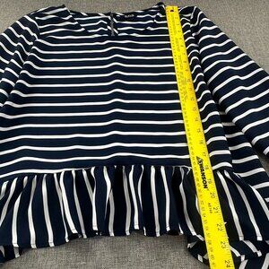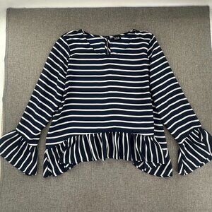 a.n.a A New Approach Top Striped Navy & White Long Sleeve Ruffled Hem Round Neck