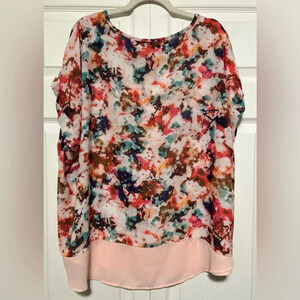 a.n.a A New Approach Women’s Pink & Multi Color Short Sleeve Blouse Size 2X