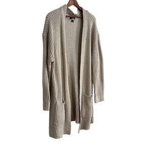a.n.a A New Approach Open Front Ribbed Knit Cotton Cardigan Sweater Cream XL