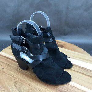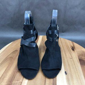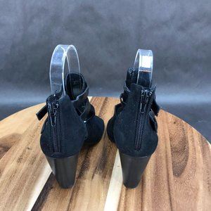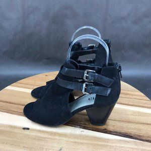 a.n.a Black Faux Leather Harness Adjustable Peep Toe Block Heel Booties Womens 6