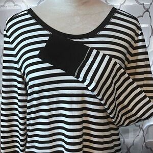 a.n.a Black and White Striped Tunic. Long sleeves with 4" black Cuff. Cotton Blend Size Large