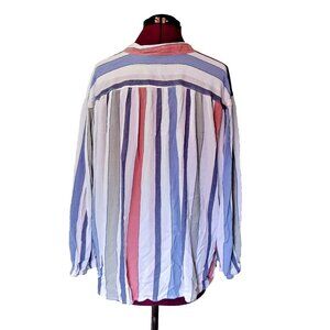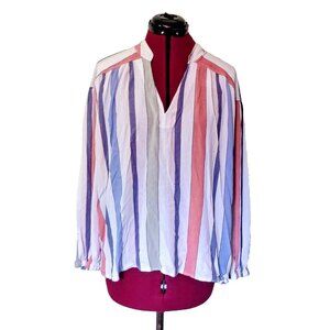 a.n.a Blouse Top Multiclor Womens Size XXL Striped Side Split Long Sleev…