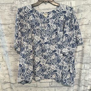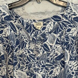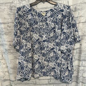 a.n.a Blouse Womens 3X White Blue Vneck Short Sleeve Floral