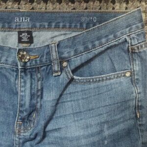 These a.n.a jeans feature a classic straight leg cut in a versatile blue color, enhanced with intentional distressed details for a trendy, worn-in look. The denim offers a comfortable fit, making them perfect for casual outings.