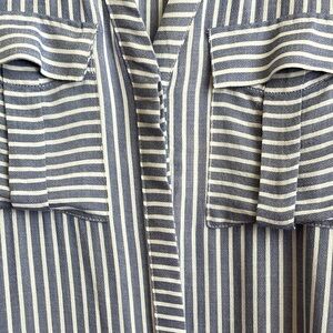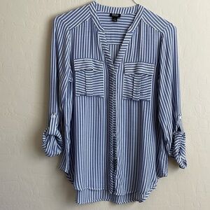a.n.a. Blue White Stripe Oxford Roll Sleeve Button Down Top Women’s Small