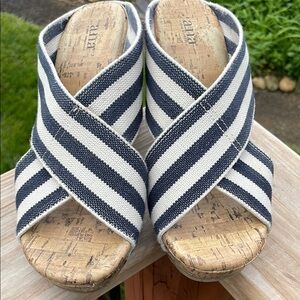 a.n.a Blue and White Wedge Sandals with Cork Sole