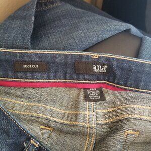 a.n.a. Bootcut Dark Wash Jeans, Size 29/8. Some wear on bottom back of pantlegs, pictured. Pants are in great condition otherwise!