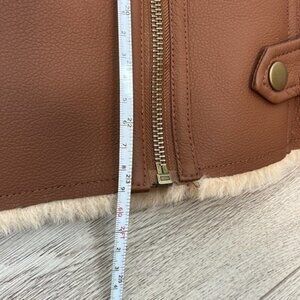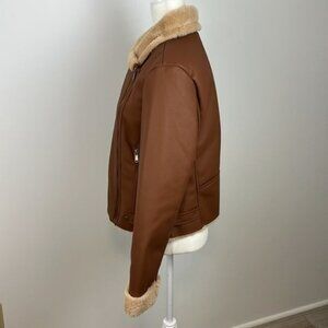 a.n.a. Brown Imitation Leather Coat with Faux Fur Size Large NWT