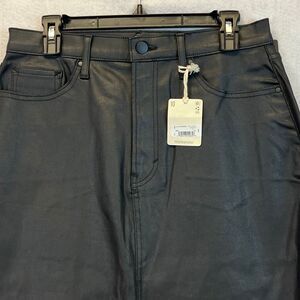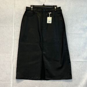 a.n.a. Faux Leather Skirt Sz10 High Rise Dark Rinse Denim Black Front Slit NEW