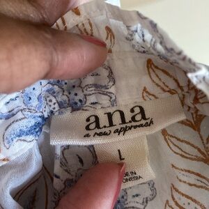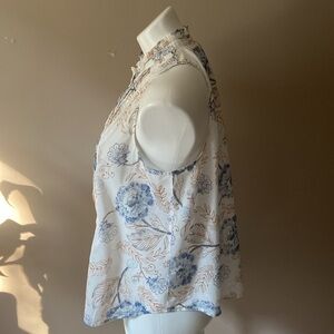 a.n.a Floral Blue And White Sleeveless Buttoned Down Tank Blouse