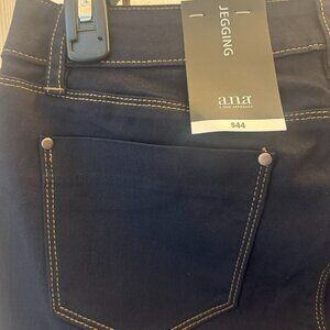 a.n.a. super-stretch sleek jeans leggings in smooth indigo denim with a zip fly. They are a moderately low rise - nothing too low, but a fresh departure from the high waists we've been seeing for years. Whether you pair your jeggings with a chic blazer and a kitten heel, or with boots or sneakers and your favorite comfy hoodie, you're going to feel good and look amazing in these! Fabric: 76% cotton, 22% polyester, 2% spandex (care suggestion: machine wash warm, tumble dry medium, warm iron). Never worn.