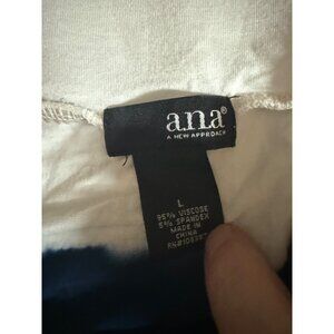 a.n.a Maxi Skirt Womens Large White Blue Striped Stretch Side Slit Drawstring