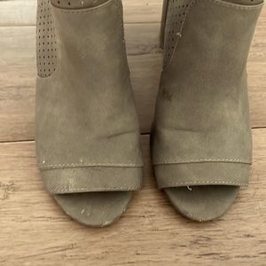 a.n.a. Tasha Zip Peep Toe Block Heel Booties in Taupe