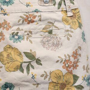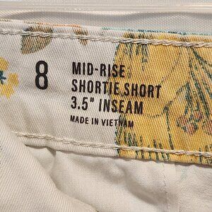 Women's size 8, a.n.a A New Day, white multi color floral mid rise shorts. Cotton and spandex, made in Vietnam, machine washable.