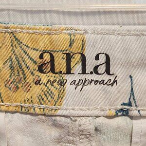 a.n.a Mid Rise Floral Shorts Women's 8 Flat Front Chino Slash Pockets 3.5 Inseam