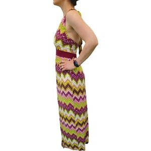 a.n.a. Multicolored Chevron Halter V-neck Maxi Dress Size Small