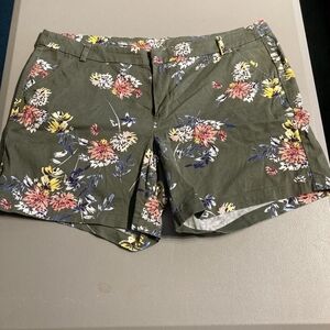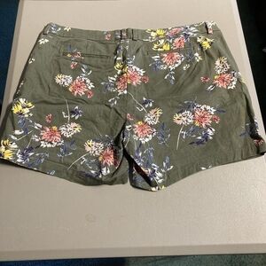 a.n.a. Olive Green Floral Twill Chino Shorts Women's Size 18W Casual Summer EUC