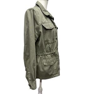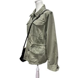 a.n.a. Olive Green Utility Jacket Drawstring Waist Snap Zip Closure Size L