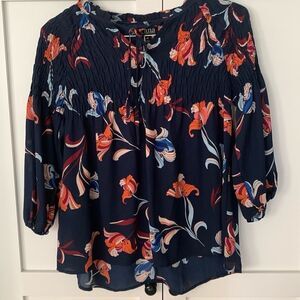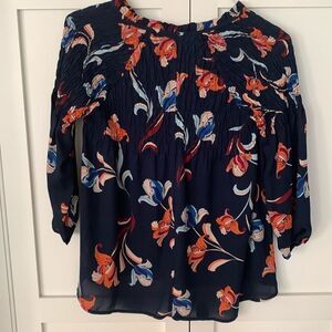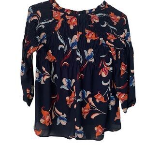 a.n.a Peasant Blouse, Boho Floral Print, Multicolor Flowy Bohemian Top, Size: XS