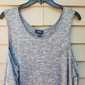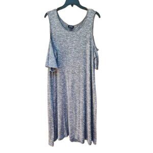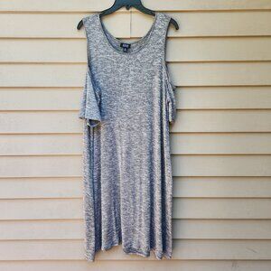 a.n.a Plus Gray Heathered Knit Shift Dress Cold-Shoulder Short Sleeves Pullover Stretch