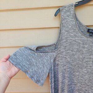 a.n.a Plus Gray Heathered Knit Shift Dress Cold-Shoulder Short Sleeves Pullover