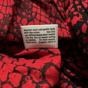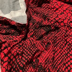 This a.n.a top showcases a vibrant red and black snakeskin pattern, enhanced by a notched collar and stylish cut-out details. The buttoned design adds a touch of elegance, making it a standout piece for any occasion.
