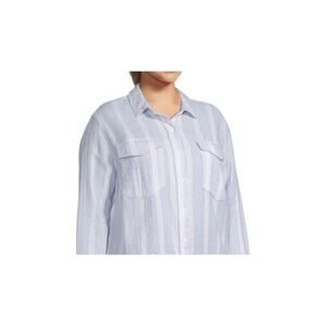 a.n.a Size 0X Light Blue & White Stripe Utility Shirt w/ Pockets NWT