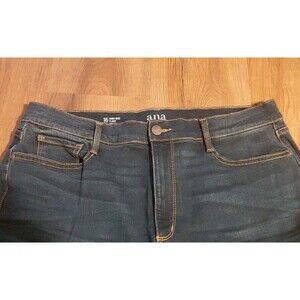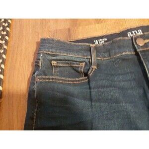 The a.n.a. Size 16 High Rise Flare Leg Dark Wash Stretch Inseam 30.5" Blue Jeans are a stylish and comfortable choice for women. Made from a cotton blend denim fabric with added stretch, these jeans feature a high rise and flared leg silhouette for a trendy look. The dark wash and solid blue color give them a versatile and classic appeal, perfect for any season. With a 5-pocket design and zip/button closure, these jeans are machine washable for easy care and maintenance. Ideal for a casual everyday style or dressed up for a night out, these jeans are a wardrobe staple for any fashion-forward individual.
